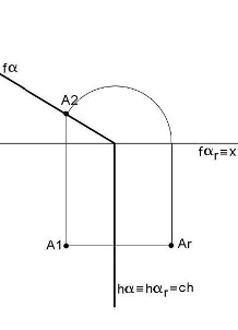 Neste caso, a charneira do rebatimento é o traço frontal do plano (fa = far)