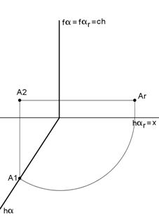 Neste caso, a charneira do rebatimento é o traço horizontal do plano (ha = har)