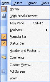 As Barras de Ferramentas normalmente apresentadas no Excel são as barras “Standard” (contem os botões New, Open, Save, Print, Print Preview, Cut, Copy, Past, entre outros) e a “Formating” (contem, entre outros, botões para formatação de caracteres e parágrafos). Contudo, é possível alterar as Barras de Ferramentas apresentadas no Excel segundo as preferências ou necessidades do utilizador. Para alterar as Barras de Ferramentas apresentadas, deve ser escolhida a opção “Toolbars” no menu View e escolher a barra a retirar ou a acrescentar.