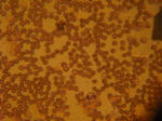 | Introdução Este trabalho foi realizado no âmbito da disciplina de biologia com o objetivo de observar as preparações definitivas de sangue humano e conhecer a sua constituição bem como criar e observar a nossa própria preparação com sangue humano. O sangue é uma mistura de aspecto líquido e coloração vermelha, bombeada pelo coração, que circula dentro do sistema cardiovascular de todos os seres com um sistema circulatório fechado, exerce uma importante função vital, que consiste em transportar os nutrientes e o oxigénio para todas as células do corpo. O sangue apresenta constituintes importantes como as hemácias, que transportam oxigénio, as plaquetas que também apresentam uma importante ação nos mecanismos de coagulação do sangue e ainda os leucócitos que são maiores que as hemácias mas em menor numero e que desempenham a função de defender o organismo contra os agentes patogénico, conferindo a imunidade ao sistema. Os leucócitos apresentam-se numa grande variedade de formas, tamanhos, número, e funções específicas, exemplos destes são os linfócitos, monócitos, neutrófilos, eosinófilos e basófilos. Linfócitos Os linfócitos pequenos podem ser linfócitos T ou linfócitos B. Estes são responsáveis pela defesa e inativação dos agentes patogénicos. Monócitos São leucócitos agranulares, é a maior célula encontrada na corrente sanguínea, sendo produzida na medula óssea. Os monócitos quando se deslocam para os tecidos, recebem o nome de Macrófagos. Estes macrófagos são responsáveis pela proteção dos tecidos. Neutrófilos Possui no seu interior granulações finas e delicadas, que não possuem afinidade com os corantes hematológicos. Essas células são responsáveis pela fagocitose de pequenos microrganismos. Eosinófilos São leucócitos com um diâmetro maior do que os neutrófilos, as suas granulações são cor de laranja e seu núcleo é bilóbular. Circulam no sangue por 8 horas, seguem para os pulmões, pele e trato gastrointestinal, onde serão eliminados. Basófilos Possuem uma forma esférica e um núcleo irregular. Apresenta um citoplasma levemente basofílico (cor azul) e quase sempre ofuscado pelos vários grânulos grosseiros corados de roxo. Os grânulos estão dispostos irregularmente cobrindo também o núcleo. Apresentam dois lóbulos e raramente três ou mais. Fundamentação teórica Para a realização desta atividade laboratorial foram necessários conhecimentos sobre o sistema imunitário bem como dos diferentes tipos de leucócitos. Os seres vivos possuem mecanismos internos de defesa, que constituem o sistema imunitário, protegendo-os de doenças causadas por agentes patogénicos, conferindo imunidade. O sistema imunitário é um conjunto de órgãos, tecidos e células capaz de reconhecer os elementos próprios (toxinas por ele produzidas) e estranhos ao organismo (agentes patogénicos) e de desenvolver mecanismos que o protegem permitindo assim o seu bom funcionamento. As respostas imunitárias podem constituir uma defesa não específica, uma vez que promovem uma proteção geral contra os agentes patogénicos destruindo a maioria deles, ou uma defesa específica, que combate especificamente cada agente patogénico, é direcionada para um tipo particular de substância ou agente patogénico que tenha conseguido entrar no organismo. As defesas não específicas protegem o organismo de grande parte dos agentes patogénicos e incluem as barreiras superficiais, as barreiras químicas e celulares, a fagocitose, a resposta inflamatória e as proteínas com ação antimicrobiana. As barreiras superficiais, químicas e celulares constituem a primeira linha de defesa do organismo: a pele impossibilita a entrada dos agentes patogénicos quando intacta, o muco produzido pelas mucosas do sistema visual, respiratório, digestivo, excretor e reprodutor, as lágrimas e a saliva que funcionam também como barreira á entrada dos invasores, entre outros. A fagocitose é usada quando os agentes patogénicos conseguem ultrapassar as barreiras superficiais, químicas e celulares, consiste na ingestão e digestão dos agentes patogénicos. As células promotoras deste mecanismo são os fagócitos, que correspondem a leucócitos com capacidade de realizar a fagocitose. Quando a integridade dos tecidos é afetada e os agentes patogénicos entram no organismo, este desenvolve uma reação inflamatória os vasos sanguíneos dilatam aumentando o fluxo sanguíneo o que proporciona uma maior quantidade de leucócitos (nomeadamente fagócitos) na região afetada, para que estes atravessem os capilares por diapedese e ajudem no combate aos agentes patogénicos. As proteínas com ação antimicrobiana ativam-se promovendo uma resposta sequencial e assim podem aderir às membranas dos agentes patogénicos, ativar a resposta inflamatória atraindo os fagócitos, auxiliar os fagócitos na destruição dos agentes patogénicos e também, em colaboração com os anticorpos, promover a lise das células invasoras. Nesta experiência utilizamos o corante Wright, que consiste numa mistura de corantes, um corante básico (azul de metileno) e um corante ácido (eosinato de azul), permitindo a coloração simultânea do citoplasma e do núcleo das células. Enquanto o corante básico confere cor azul-violeta aos ácidos nucleicos, nucleoproteínas, grânulos basófilos e aos grânulos dos neutrófilos, a eosina confere cor vermelha alaranjada à hemoglobina e aos grânulos dos eosinófilos. Nesta experiência utilizamos também uma solução tampão. As soluções tampão reduzem a variação dos valores de pH, mantendo-o aproximadamente constante, mesmo com adição de pequenas quantidades de ácidos ou bases. Assim, são usadas sempre que se necessita de um meio com pH aproximadamente constante, podem ser formadas por um ácido fraco e um sal formado pela reação desse ácido com uma base forte, ou, então, por uma base fraca e um sal 