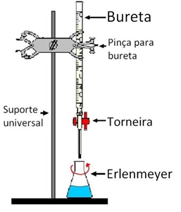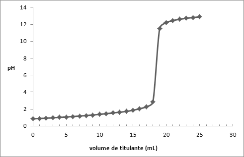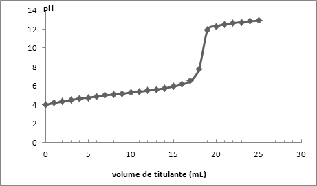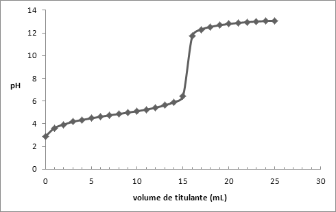 | | A atividade laboratorial realizada na disciplina de monitorização ambiental teve como objetivo a determinação da concentração exata de soluções previamente preparadas sendo elas, hidróxido de potássio, ácido clorídrico e ácido acético, recorrendo, assim, a uma titulação potenciométrica. Introdução teórica Existem várias formas de realizar uma titulação e vários tipos de titulações, neste trabalho experimental realizou-se uma titulação potenciométrica ácido/base. A titulação é um dos processos mais utilizados em química analítica quantitativa. É uma técnica volumétrica em que através da medição rigorosa de volumes é possível determinar a concentração de uma solução, utilizando outra solução cuja concentração é conhecida (solução padrão). Neste processo adiciona-se uma solução, que é colocada na bureta (titulante), à outra solução que se encontra no balão de Erlenmeyer (titulado) ocorrendo entre as duas, uma reação ácido-base.  O ponto de equivalência da reação é atingido quando o número de mol de iões H3O+, provenientes do ácido, iguala o número de mol de iões OH- provenientes da base. Do ponto de vista prático, a deteção do ponto de equivalência pode ser feita usando um indicador ácido-base apropriado, que, mudando de cor para um valor de pH, o mais próximo possível do ponto de equivalência, assinala o fim da titulação. No entanto, existem outros processos de deteção deste ponto, como o uso de um medidor de pH (método potenciométrico) ou a medição da condutividade elétrica do titulado (método condutimétrico). No método potenciométrico recorre-se a um elétrodo, sendo que no trabalho em questão o elétrodo utilizado foi um elétrodo combinado que contém um elétrodo de vidro e um elétrodo de referência de calomelano saturado combinados numa única unidade, formando uma peça de equipamento que é mais robusta para se introduzir e suportar na solução a ensaiar. O princípio no uso deste elétrodo está, basicamente, na sua membrana de vidro. Quando esta é imersa numa determinada solução, desenvolve-se um potencial que é uma função linear da concentração de hidrogénio na mesma. Substancia primária: Para que seja possível a determinação da concentração exata de uma substância em solução, sem ser necessário recorrer a titulações ou outros processos, é necessário que essa mesma substância obedeça a certos critérios, sendo eles: · Poder obter-se em estado quimicamente puro, isto é, não conter impurezas em quantidades tais que possam influenciar a precisão da análise (a percentagem de impurezas tem de ser inferior a 0,05%); · Tem de ser estável, quer no estado sólido, quer em solução, isto é, não deve reagir facilmente com outras substâncias; · Deve ser fácil de secar e não ser higroscópica. Além destas condições, deve-se ainda escolher as substâncias de maior massa molecular, pois isso diminui o erro relativo cometido na pesagem, aumentando assim a precisão da análise. As substâncias que satisfazem as condições acima mencionadas são designadas substâncias primárias. Estas substâncias normalmente são utilizadas na titulação de soluções em que a sua concentração exata é desconhecida. Material · Titulador potenciométrico; · Balança analítica; · Hidróxido de potássio; · Hidrogeno ftalato de potássio; · Ácido acético; · Ácido clorídrico; · Azul Bromotimol; · Fenolftaleína; . Balões volumétricos de 200,00 mL e 250,00 mL; · Solução tampão de pH 4 e 7; · Espátula; · Gobelés; · Pipeta graduada; · Varetas; Procedimento Iniciou-se o trabalho prático pela realização de cálculos necessários à preparação das soluções a titular. O objetivo principal do trabalho era a titulação de uma base forte com um ácido forte, assim como a titulação da mesma base forte com um ácido fraco. A base escolhida foi o hidróxido de potássio, porém esta solução não sendo uma substancia primária necessita de ser previamente titulada com uma outra solução de concentração exata conhecida. Após a preparação de hidrogeno ftalato de potássio (substância primária) e titulação da solução de KHO, procedeu-se à titulação das soluções ácidas. Para realizar estas titulações é necessário pipetar 15,00 mL de cada solução ácida para um gobelé de 100 mL, juntando 5 gotas de indicador, e preparar uma bureta com KHO padronizado. É também essencial efetuar a calibração e condicionação dos eléctrodos presentes no titulador potenciométrico com soluções tampão de pH 4 e 7. Depois da preparação do material inicia-se a titulação, em que se mede o pH da solução titulada após adições sucessivas de 1 mL de titulante. Aquando do fim da titulação traçam-se os gráficos da curva de titulação, e determinam-se os pontos finais, calculando, desta forma, a concentração rigorosa das soluções. Cálculos efetuados na preparação das soluções: V= 200,00 mL M (C8O4H5K)= 204,22 g/mol [C8O4H5K]= 0,1 mol/L [C8O4H5K]= ![]() m = n x M mteórica = 0,020 x 204,22 <-> m = 5g C8H5O4K mpesada = 5,1505g n= n= 0,02522 mol [C8O4H5K]= [C8O4H5K]= 0,12610 mol/L [KHO]= 0,1mol/L V= 250,00 mL %m/m= 85% n= [KHO] x V <-> n= 0,1 x 250,00 <-> n= 0,025 mol m= 0,025 x 56,11 <-> m= 1,4g KHO 1,4g ----------------> 85% x --------------------> 100% x=1,6g KHO M (CH3COOH)= 60,06 g/mol [CH3COOH] = 0,1 mol/L r= 1,05 g/ml V= 200,00 mL n= 0,1 x 200,00 x <-> n= 0,02 mol m= 0,02 x 60,06 <-> m= 1,20g V= <-> V= <-> V= 1,14 mL CH3COOH Nota: não foram necessários cálculos para a preparação da solução de HCL, pois esta já se encontrava preparada. Resultados KHO - C8O4H5K KHO- CH3COOH KHO-HCL | pH | mL | pH | mL | pH | mL | | 4,02 | 0 | 2,89 | 0 | 0,85 | 0 | | 4,2 | 1 | 3,63 | 1 | 0,89 | 1 | | 4,35 | 2 | 3,93 | 2 | 0,93 | 2 | | 4,51 | 3 | 4,18 | 3 | 0,97 | 3 | | 4,68 | 4 | 4,34 | 4 | 1,02 | 4 | | 4,77 | 5 | 4,48 | 5 | 1,07 |