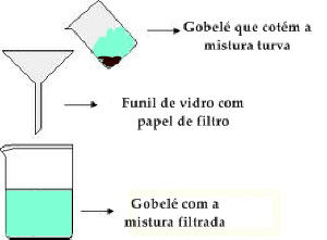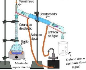 | Introdução Teórica: Na aula de físico-química foi-nos proposta uma atividade experimental. Para darmos início a esta experiência, era essencial sabermos as técnicas de separação adequadas a cada tipo de situação. Depois de avaliarmos as misturas que tínhamos que separar (água, cloreto de sódio, areias e limos), chegamos à conclusão que para: . separar sólidos de líquidos, recorremos a uma decantação, sendo preciso primeiro que a fase sólida se deposite no fundo do recipiente (sedimentação), ficando em repouso por algum tempo. Depois desse processo, escorresse-se cuidadosa e lentamente a fase líquida para outro recipiente, com a ajuda da vareta de vidro. . separar partículas sólidas de líquidos, usa-se a filtração, que consiste num processo de separação em que usamos um filtro adequado, onde as partículas sólidas ficam retidas enquanto o liquido é filtrado para um novo recipiente. . separar uma mistura homogenia (uma mistura que apresenta um aspeto uniforme e não é possível distinguir os constituintes dessa mistura, todos os componentes dessa mistura estão numa só fase), recorre-se a uma destilação simples, este processo é usado quando a substância a separar é o único componente com baixo ponto de ebulição, tendo o outro componente um ponto de ebulição diferente. Consiste então este processo em aquecer a mistura até á ebulição, a água transforma-se em vapor, passando pelo condensador, passa novamente ao estado líquido, ficando assim a outra substância num outro recipiente. Objectivos: Temos uma mistura de água, cloreto de sódio, areia e limos (bocados de alface) em que se pretende obter água. Assim os objectivos são: 1. Separar a água com cloreto de sódio da areia e dos limos, utilizando uma decantação. 2. Purificar a mistura obtida anteriormente usando uma filtração. 3. Por último, para separar a água do cloreto de sódio, recorremos a uma destilação simples. Procedimento Experimental: Para a 1ª separação- Decantação: 1º. Foi-se buscar o material de laboratório necessário para a decantação. 2º. Num gobelé fez-se a mistura da água, cloreto de sódio, limos (alface) e areia. 3º. Colocou-se uma vareta de vidro num outro gobelé. 4º. Escorreu-se, lentamente, a mistura através da vareta de vidro. Para a 2ª separação- Filtração: 5º. Foi-se buscar o material de filtração e montou-se a estrutura para a separação. 6º. Procedeu-se á técnica de obtenção de um funil, com um papel de filtro. 7º. Colocou-se o funil feito de papel de filtro dentro do funil de vidro. 8º. Escorreu-se a mistura obtida no ponto 4 para um gobelé, através do papel de filtro e do funil de vidro. 9º. Passou-se assim a mistura obtida (água com cloreto de sódio) para um balão de destilação. Para a 3ª separação- Destilação Simples: 10º. Foi-se buscar o material de laboratório necessário para a destilação simples, e montou-se a estrutura para a separação. 11º. Ligou-se a manta de aquecimento á eletricidade, que contém assim o balão destilado com a mistura do ponto 8. 12º. Abriu-se um pouco a torneira, (quando o balão de destilação e o condensador se encontraram com vapor). 13º. Foi-se esperando até á separação estar concluída. 14º. Lavou-se, todo o material que foi necessário, e colocou-se os mesmos, no seu devido lugar. Na 3ª separação em que procedemos a uma destilação simples, o resultado foi também o que esperávamos, conseguimos então separar o cloreto de sódio da água ficando em recipientes diferentes. Este processo é devidamente demorado pois, tivemos 30 minutos para que a mistura de água e cloreto de sódio aquecesse e assim a água se tornar em vapor passando pelo condensador, e voltar ao seu estado inicial –liquido-, passando assim para o outro golebé, ficando o cloreto de sódio no balão de destilação. Material: Reagentes utilizados para a mistura: . Água; . Areia; . Cloreto de Sódio; . Folhas de alface (limos); . Golebé Para 1º separação: Decantação: . Mistura nicial; . Gobelé; . Vareta de vidro; Para 2ª experiência: Filtração: . Mistura obtida na 1ª separação no golebé; . Dois gobelés; . Vareta de vidro; . Papel de filtro; . Funil de vidro; . Suporte universal; Para a 3ª separação: Destilação Simples: . Mistura obtida na experiência 2 num balão de destilação; . Manta de aquecimento; . Termómetro; . Rolhas de adaptação; . Condensador com tubos de borracha para a entrada e saída de água; . Gobelé de recolha de destilado; . Alonga; . 2 Suportes universais com garra e noz. Interpretação de Resultados: Na 1ª separação (líquidos de sólidos), a decantação foi bem sucedida, sendo assim o que esperávamos, tendo ficado a solução liquida notoriamente separada da areia e dos ‘limos’, a solução que obtivemos conseguimos observar que, continha ainda partículas em suspensão na água. Para isso procedemos à 2ª separação, a filtração para que a água ficasse límpida, vimos que este é um processo lento e um pouco demorado, sendo o resultado também obtido o esperado, ficando com a mistura de água e cloreto de sódio límpidos.  Figura - Decantação  Figura - filtração  Figura - Técnica para obtenção de um filtro liso  Figura - Destilação Simples Conclusão e Discussão: Esta atividade experimental demostra como devemos proceder para separar uma mistura Liquido-Sólido e Liquido-Liquido. Começamos a nossa experiência tendo como base que iriamos proceder a duas técnicas de separação, a decantação e a destilação simples. Iniciámos a separação Liquido-Sólido com uma decantação, após a termos realizado (pensando não ser necessária qualquer outro tipi de separação, vimos que de facto era necessário), ao realizarmos observámos que a mistura não estava límpida e continha partículas em suspensão, então vimos que era necessária uma filtração para que a mistura ficasse mais límpida. Este é