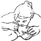 3. Se a criança não respira dê 2 insuflações delicadamente. Tape a boca e nariz da criança com a sua boca e ventile. Cada insuflação deve durar 1segundo. Deve verificar se o peito da criança se expande.