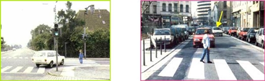 Fig. 8 Só o menino está a agir correctamente. Fonte :http://www.junior.te.pt/servlets/Rua?P=Sabias&ID=203(15/05/2009) Conselhos aos pais e educadores . Deve-se chamar à atenção da criança para a importância de andar sempre no passeio e para o perigo de andar na faixa de rodagem, explicando-lhe que essa é só para os veículos e não para os peões; . Andar sempre com a criança pela mão e seguir todas as regras de trânsito. Dar o exemplo, é o mais importante! . Explicar à criança qual a maneira mais segura para atravessar a faixa de rodagem: usar a passadeira e seguir as regras básicas; parar no lancil do passeio; olhar para a esquerda, para a direita e novamente para a esquerda; quando a via estiver livre pode-se atravessar, mas sempre a olhar para ambos os lados; . Ao atravessar, deve-se mostrar a esta que a forma mais viável de o fazer é sempre perpendicularmente ao eixo da via e nunca na diagonal, uma vez que este processo é mais demorado; . Pela mesma razão, nunca se deve atravessar um cruzamento pelo centro, o melhor é contorná-lo, mesmo que o caminho se torne mais longo; . A criança deve-se posicionar à direita do adulto, tendo a faixa de rodagem do lado esquerdo; . É com esta idade que a criança aprende a maior parte do vocabulário usado pelos adultos. Assim, deve iniciar uma aprendizagem simples do vocabulário da segurança rodoviária; . Deve-se ainda saber que os melhores sítios para brincar são os locais seguros como parques infantis, jardins, etc, e não perto do trânsito. . Usar sempre o cinto de segurança, independentemente da distância que irá percorrer; . Quando o educador (a) sair á rua com um grupo de crianças deve utilizar as raquetes de sinalização, colete florescente. Como é normal irá também um auxiliar, por isso mesmo é mais fácil controlar as crianças, que irão de mãos dadas e em fila. . Dê o exemplo! Mostre à criança que também utiliza o cinto de segurança. . No caso da criança querer sair do sistema retenção, pare o carro. Seja firme, fale com a criança para que ela perceba que está a por em risco a sua vida; . Quando realizar viagens de longa distância, mantenha-a ocupada com uns brinquedos; . Escolha o percurso mais seguro até à escola. Treine várias vezes com a criança, de modo a que ela identifique os perigos mais visíveis. Explique-lhe as formas de os evitar; . Exemplifique os comportamentos sempre de forma correcta, lentamente em função das capacidades da criança; . Ensine a criança a atravessar a rua entre os veículos estacionados; . Treine o com as crianças, o atravessamento das ruas apenas em locais seguros, mesmo que seja necessário fazer pequenos desvios para esta utilizar os passeios, passadeiras, sinais luminosos, passagens desniveladas, etc; . A melhor forma de ensinar as crianças a serem utentes responsáveis e seguros é dar bons exemplos; . Seja tolerante, simpático e solidário com os outros condutores e peões A criança tem comportamentos de risco, enquanto utente de transportes públicos ou escolares (ex: atravessar a estrada sem esperar que o autocarro se afaste); . Os automóveis das famílias ou os transportes escolares não se encontram adaptados para transportar com segurança as crianças (ex: cadeira inadaptada ao tamanho ou sobrelotação de crianças numa carrinha).