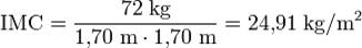 1. Capacidade de observação: É a capacidade de perceber o desenvolvimento de um movimento, dos colegas de equipa, dos adversários ou dos objectos móveis, tendo como referência os objectos imóveis. Também pode ser a observação de uma corrida ou do adversário nos desportos de combate. 2. Capacidade de controlo motor: É a capacidade de poder responder a exigências de elevada precisão nos movimentos, do ponto de vista temporal, espacial e dinâmico. 3. Capacidade de reacção motora: É a capacidade de poder reagir o mais rápido e correctamente possível a um determinado estímulo. 4. Capacidade de antecipação: É a capacidade de prever o desenvolvimento e o resultado de uma determinada acção que se está a desenrolar, para que assim o desportista possa preparar a sua própria acção. 5. Ritmo: É a capacidade de compreensão, acumulação e interpretação de estruturas temporais e dinâmicas pretendidas ou contidas na evolução do movimento. 6. Capacidade de expressão motora: É a capacidade de criar os próprios movimentos de uma forma estética e artística. 7. Capacidade de representação: É a capacidade de representar mentalmente situações bem determinadas de acordo com as informações disponíveis. 8. Capacidade de diferenciação cinestésica: É a capacidade de diferenciar as informações provenientes dos músculos, tendões e ligamentos, que nos informam sobre a posição do nosso corpo num determinado momento e espaço e que nos permite realizar as acções motoras de uma forma correcta e económica, conseguindo assim a coordenação dos movimentos. 9. Capacidade de coordenação motora: É a capacidade de adequar de forma correcta uma combinação de acções que se desenrolam de uma forma sequencial ou ao mesmo tempo. 10. Equilíbrio: É a capacidade de manter o corpo numa relação normal quanto ao solo, desenvolvendo reflexos para adaptar o corpo ao movimento. 11. Orientação espacial: É a capacidade de reagir a um estímulo externo em termos de deslocação ou de estabilização da postura. O índice de massa corporal (IMC) é uma medida internacional usada para calcular se uma pessoa está no peso ideal. Trata-se de um método fácil e rápido para a avaliação do nível de gordura de cada pessoa. O IMC é determinado pela divisão da massa do indivíduo pelo quadrado de sua altura, onde a massa está em quilogramas e a altura está em metros. Exemplo: Para uma pessoa com 72 quilogramas de massa e 1,70 metros de altura, temos: