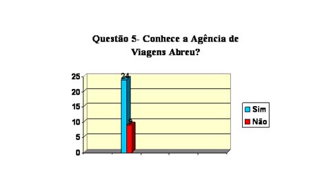 Análise dos Gráficos No que diz respeito à análise dos gráficos ilustrados anteriormente iremos começar pelo que é referente à questão numero 1. 1-Já alguma vez viajou para fora de Portugal? Esta questão teve como positivas 19 respostas e 14 respostas negativas, o que revela que a maioria da população inquirida já viajou para fora do país. 2-Qual o meio de transporte mais utilizado nas suas viagens para o exterior? Esta e a questão número três eram umas das questões apenas formadas para os inquiridos que já tivessem feito uma viagem para fora de Portugal. Relativamente a esta questão as respostas dos inquiridos variaram bastante estando todas praticamente nos mesmos valores com excepção do transporte por camião e Outros que apenas foram assinaladas em dois casos, sendo então de destacar o Avião que é pelos vistos o meio de transporte para fora de Portugal mais apreciado pelos Portugueses. 3-Quando viajou recorreu à ajuda de agências de viagens para a planificação da viagem? Com esta questão verificámos que a maioria dos portugueses recorre a agências de viagens para a planificação de uma viagem, ou seja oito dos inquiridos respondeu assim, seis dos inquiridos responderam que não necessitaram da ajuda de uma agência de viagens e quatro não sabem ou não respondem. 4-Qual o destino turístico que mais gostaria de visitar? No que respeita a esta questão o tipo de respostas como é de esperar é muito variado, havendo no entanto três destinos que se destacam, são eles Brasil com oito respostas, de seguida Tunísia e Canárias a que os inquiridos escolheram com três respostas cada. As pessoas que não responderam e que não sabem são onze. 5-Conhece a agência de viagens Abreu? Esta questão foi muito significativa, praticamente toda a população inquirida respondeu que conhecia a agência de viagens Abreu, ou seja vinte e quatro pessoas, sendo apenas nove as que não conheciam a agência. Com a realização destes inquéritos, concluímos que no pequeno número de inquiridos (trinta e três pessoas), a maioria já viajou para fora do país, dessa maioria seis fizeram-no de avião, com o apoio de uma agência de viagens. Do número total de inquiridos sete tem preferência em viajar para o Brasil e vinte e quatro conhecem ou já ouviram falar da agência Abreu. Estratégias Aplicadas pela Empresa A Abreu opta essencialmente por criar estratégias inovadoras no mercado sem dar hipóteses à concorrência. São então dados como referências de estratégias alguns dos produtos oferecidos pela Abreu, tais como a Abreu Jovem, Abreu Sénior, Cartões com descontos e facilidades para clientes disponibilizando ainda de descontos com a utilização de cartão-jovem. Iremos referi em baixo algumas das notícias que demonstram o sucesso da Abreu com algumas das suas inovações em serviços e não só. Baptismo de voo gratuito para 600 Cerca de 600 seniores, oriundos do Continente e das Ilhas vão andar de avião, pela primeira vez, nos próximos dias dia 2 e 4. A iniciativa é da Agência de Viagens Abreu e visa "proporcionar, a um escalão etário específico da população, uma experiência única". Este primeiro mega baptismo de voo terá cerca de cinquenta minutos de duração e ocorrerá numa viagem a realizar entre o Porto e Lisboa, ou vice-versa, consoante a origem dos participantes. Além do passeio de avião, em voo charter da Yes, os seniores terão ainda um programa turístico à sua disposição. Assim, no dia 2, para aqueles que vêm da Zona Norte, e depois chegarem ao aeroporto da Portela, vão visitar Sintra, o cabo da Roca e passear no Tejo de barco, onde almoçarão. Os idosos do Sul do país e das Ilhas seguem para o Norte, visitam a cidade do Porto e fazem um mini cruzeiro fluvial no Douro, com almoço também a bordo. Durante esses dias, serão sorteadas viagens e "outras ofertas". O regresso às cidades de origem, no caso de Lisboa e do Porto, será efectuado em comboio turístico. Ter 60 ou mais anos e nunca ter andado de avião são os requisitos necessários para os seniores se candidatarem ao baptismo de voo. O processo de selecção é da responsabilidade das autarquias, que terão de escolher, cada qual, dois seniores do concelho. João Barroso, da Agência Abreu, explicou a ideia da iniciativa: "Temos de ter uma componente de partilha para aqueles que, muitas vezes, por falta de meios, não podem usufruir daquilo de que gostariam. Daí esta iniciativa de forte vocação social e que dá uma maior visibilidade a toda uma programação que a empresa tem dirigida aos nossos seniores". Fonte: jornal de Noticias Quarta-feira, 25 de Agosto de 2004 Viagens em saldo muito concorridas >> Agência Abreu organiza primeira feira no Porto>> O Mercado Ferreira Borges, no Porto, foi o cenário escolhido pela Agência Abreu para promover a feira de descontos de viagens. "Tentamos encontrar um local bem localizado e que tivesse, à volta, espaços interessantes como, por exemplo, o cais da Ribeira", explicou António Pedro Ferreira, director da empresa. Além disso, acrescentou, "este edifício tem uma construção centenária considerada Património Mundial", A primeira coisa a fazer, aconselha o director, "é pegar no jornal que se encontra à entrada e escolher uma das muitas viagens, que podem adquirir no próprio local. Temos 34 brochuras e o folheto teve como intenção reunir as melhores ofertas de todos os destinos". No interior, os visitantes têm acesso a um convite que, depois de preenchido e colocado numa tômbola, os habilitará a um sorteio cujos prémios poderão ser destinos como Lanzarote, Tunísia, Ilha do Sal, Agadir, Londres, Bilbau, Porto Santo ou ainda entrada no Parque temático Ilha Mágica, em Sevilha. Apesar de ter sido fundada no Porto, em 1840, a Agência Abreu só agora arriscou trazer a iniciativa à cidade. "É muito difícil organizar a feira, simultaneamente, em Lisboa e no Porto. A intenção da agência é conta