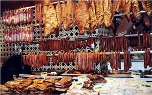 Produtos cárneos: Os produtos cárneos embalados devem estar rotulados. Os produtos que não necessitam de frio para a sua conservação podem ser expostos na parte superior do balcão, desde que devidamente protegidos do contacto directo com o público. Os enchidos curados podem ser expostos em ganchos inoxidáveis ou colocados em recipientes adequados desde que resguardados do contacto do público. Os produtos congelados e ultra congelados devem ser colocados à venda em expositores frigoríficos. Os produtos devem ser mantidos a temperatura inferior a -18ºC, só esta temperatura garante uma conservação em boas condições. Os expositores de conservação de produtos congelados e ultracongelados devem estar munidos de termómetros, colocados de forma a que se possa verificar facilmente a temperatura. Os produtos congelados e ultracongelados são preparados e embalados em unidades fabris licenciadas para o efeito, só podem ser comercializadas nas embalagens de origem, as embalagens devem apresentar-se integras, sem gelo no seu interior e devidamente rotuladas. O prazo de durabilidade mínima (prazo de validade) indicado no rótulo nunca deverá ser ultrapassado. Apenas o pescado inteiro e pescado descabeçado e eviscerado pode ser cortado em postas no acto da venda, a pedido do consumidor. Como arrumar os produtos: Devem estar devidamente sectorizados de acordo com a sua natureza, para facilitar a escolha por parte dos consumidores. A arrumação deve ser feita de forma a que as mercadorias mais antigas sejam as primeiras a ser comercializadas. As embalagens devem ser colocadas umas ao lado das outras sem ficar demasiado comprimidas e nunca devem ultrapassar a linha de carregamento limite ou linha de fronteira (expositores horizontais). Pão e Produtos Afins O pão e produtos afins não embalados devem estar fora do alcance do público e em locais adequados à preservação da sua qualidade higiénica. O pão e produtos afins devem ser expostos em prateleiras, estantes ou vitrinas, construídas em materiais adequados por forma a preservá-los de contaminações susceptíveis de afectarem a saúde dos consumidores. Os produtos de pastelaria, com especial destaque para bolos com creme, devem estar expostos em balcões ou vitrinas refrigerados. No manuseamento deve utiliza-se pinças, luvas descartáveis ou envoltórios de modo a impedir o contacto directo com as mãos. Acondicionamento: O pão e produtos afins não embalados, devem ser entregues ao cliente devidamente acondicionados em papel ou outro material apropriado não recuperável. É proibido o uso de papel impresso, com excepção para o papel novo, impresso com nome da firma/vendedor ou outras indicações referentes ao produto, na face oposta aquela que estará em contacto com o produto.