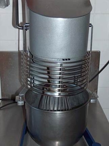 Imagem: Batedeira com protecção mecânica . Nunca retirar as protecções das máquinas quando estas se encontram em funcionamento nem inutilizar os dispositivos de segurança . Não usar adornos (pulseiras, brincos, etc.) . Não usar o cabelo comprido solto (deve estar preso com uma rede, touca ou equivalente) . Formar o pessoal para a correcta e segura utilização das diversas máquinas . Realizar uma manutenção adequada do equipamento Risco de Exposição ao Ruído A exposição ao ruído é provocada por: . Equipamentos e máquinas de trabalho: batedeiras, picadores de gelo, etc. . Sistemas de exaustão Medidas de Prevenção . Instalar, se possível, equipamentos com níveis de ruído baixos (de baixa potência sonora) . Fazer uma manutenção periódica dos equipamentos . Colocar os equipamentos mais ruidosos em locais afastados das zonas de trabalho ou enclausurá-los (evitar colocá-los encostados a paredes ou nos cantos, uma vez que estas localizações aumentam o ruído ambiente) . Insonorizar a condutas de exaustão . Utilizar ligações isolantes entre as várias condutas . Utilizar elementos antivibráteis para evitar a transmissão de vibrações à estrutura do sistema de exaustão . Utilizar protectores auriculares devidamente dimensionados (esta medida deve ser sempre de carácter provisório, até que outras medidas correctivas sejam tomadas) Riscos Eléctricos Os riscos eléctricos advêm, principalmente, de defeitos no isolamento dos equipamentos eléctricos, de um incorrecto manuseio de máquinas, fios condutores, etc. (equipamentos eléctricos), de uma deficiente ligação dos equipamentos de trabalho à terra e da ausência de procedimentos de trabalho seguros. Medidas de Prevenção . Adquirir máquinas com marcação CE . Ligar todas as máquinas e equipamentos eléctricos à terra . Fazer uma inspecção visual às instalações eléctricas antes de iniciar os trabalhos Riscos Ergonómicos As principais situações que expõem os trabalhadores a estes riscos são: . Movimentos repetitivos . Esforços excessivos . Posturas incorrectas e rígidas . Movimentação manual de cargas (alimentos, utensílios de cozinha, etc.) Medidas de Prevenção . Adaptar, dentro do possível, os postos de trabalho aos funcionários: . A altura das superfícies de trabalho devem situar-se entre os 87cm e os 97 cm . Para as tarefas que requeiram manipular cargas pesadas a altura do posto de trabalho deverá situar-se entre os 70cm e os 90 cm . A altura das mesas de trinchar deve situar-se entre os 75cm e os 100cm, com uma inclinação regulável de 10º . Utilizar máquinas que realizem automaticamente determinados trabalhos (ex.. máquinas de ralar, cortar, descascar, etc.)