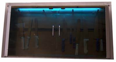 Imagens: Suporte com sistema de íman para utensílios cortantes (quando fechado também pode desinfectar os utensílios por radiação UV) Risco de Enrolamento A principal situação que expõem os trabalhadores a este risco é a utilização de máquinas com elementos em movimento rotativo (batedeiras, etc.) Medidas de Prevenção . Adquirir sempre máquinas com marcação CE . Adquirir máquinas com protecções incorporadas (ou adaptá-las a máquinas já existentes) e sempre que se justifique, associar a essas protecções dispositivos de encravamento