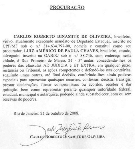 ESTRUTURA Título: Procuração. b) Qualificação: nome, nacionalidade, estado civil, profissão, CPF e residência do outorgante(constituinte ou mandante) e também do outorgado (procurador ou mandatário). c) Finalidade e Poderes: parte em que o outorgante declara a finalidade da procuração, bemcomo autoriza o outorgado a praticar os atos para os quais é nomeado. d) Data e assinatura do outorgante. e) Assinatura das testemunhas, se houver. Essas assinaturas costumam ficar abaixo daassinatura do outorgante, à esquerda. f) As firmas devem ser todas reconhecidas em cartório. ProtocoloProtocolo, na Antiguidade, significava a primeira folha que se colava aos rolos de papiro, com um resumo do conteúdo do texto manuscrito. Hoje, é o registo dos atos públicos ou registo das audiências nos tribunais. Comercialmente, é assim denominado um livro de registo da correspondência de uma empresa, ou um formulário em que se regista saída ou entrada de objetos.
