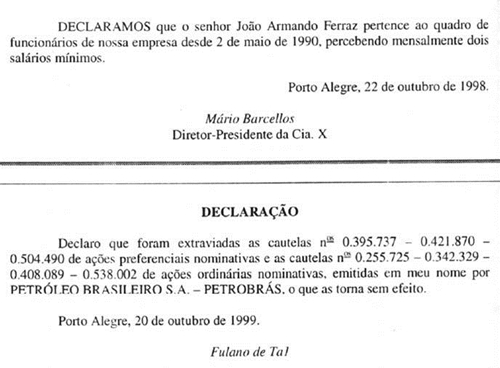 DeclaraçõesDeclaração é um documento que se assemelha ao atestado, mas que não deve ser expedido por órgãos públicos.