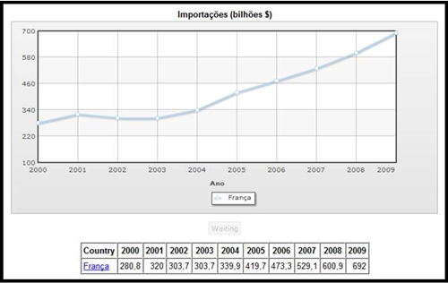 Relativamente a França, de acordo com os anos em amostra, verifica-se que o valor das importações tem aumentado desde 2000 até 2009, iniciando-se com um valor de importações de 280,8, finalizando com um valor de importações de 692. No entanto assistimos a al uma diminuição no valor das importações de 2001 até ao ano de 2003, atingindo no ano de 2002 2 de 2003 o valor de importações mais baixo relativamente aos restantes anos em amostra.